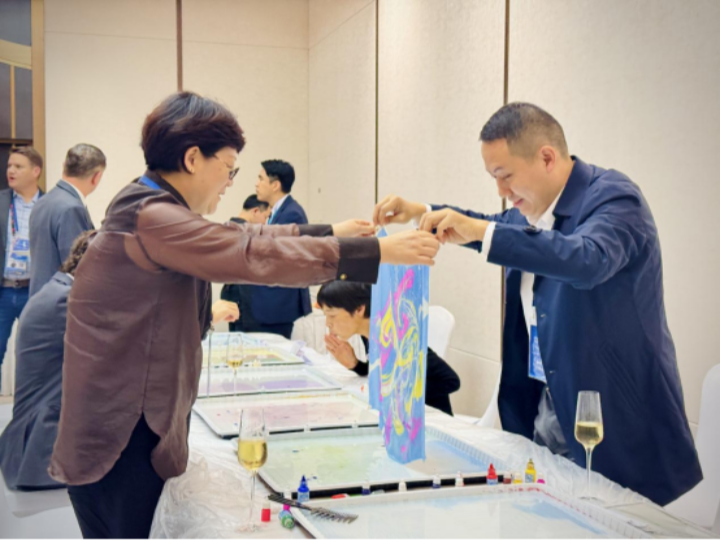 晚宴正式开始前,博遵特别策划了鸡尾酒会和湿拓丝巾体验。湿拓丝巾源自中国唐朝,被联合国教科文组织列为世界非物质文化遗产的艺术瑰宝,以其独特的艺术魅力和精湛的技艺,让在场嘉宾充分领略到了中国传统文化的博大精深与时尚元素的完美融合,与会者意犹未尽。